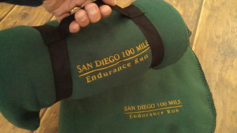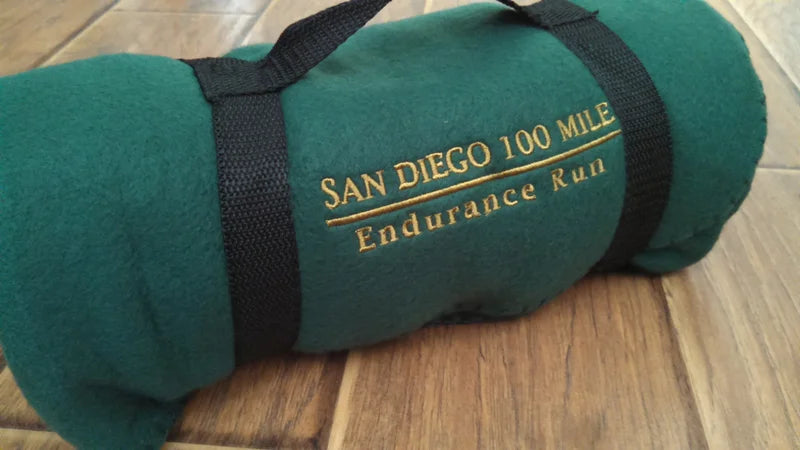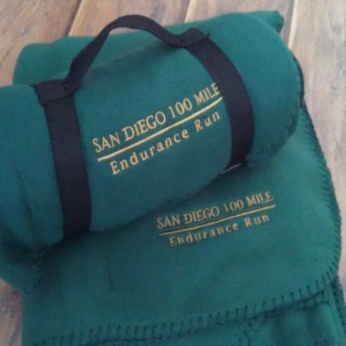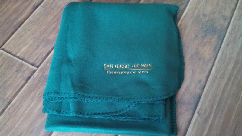 Spread warmth with this soft, comfy blanket: Green with gold embroidery on lower right corner Measures 60"L x 50"W When Rolled Up, Measure 12"L x 5"W Made of fleece (polyester) Soft and cozy Has matching whip stitching and an anti-pill finish Carry straps included