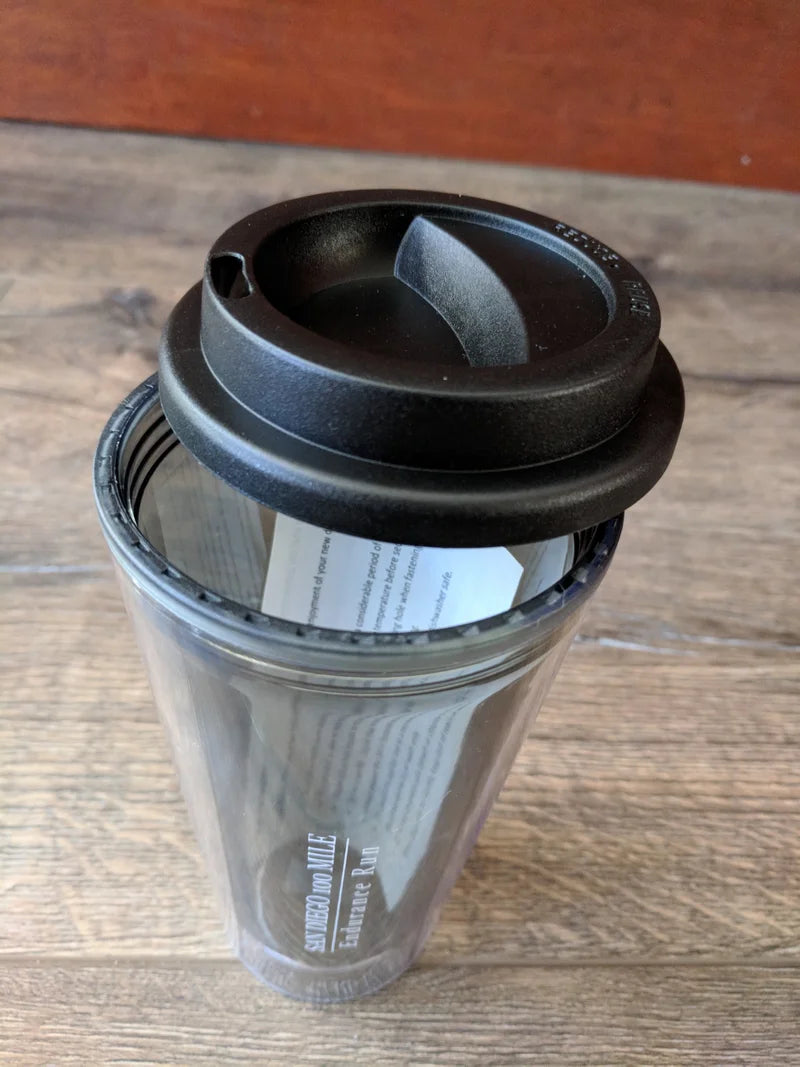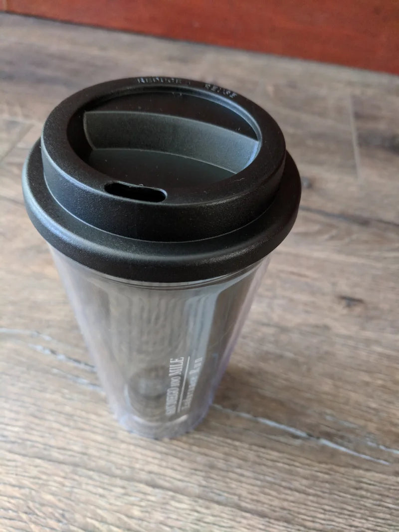 Insulated Double Wall 16oz. Screw top lid Suitable for Hot and Cold Color: Clear Smoke SD100 printed on two sides